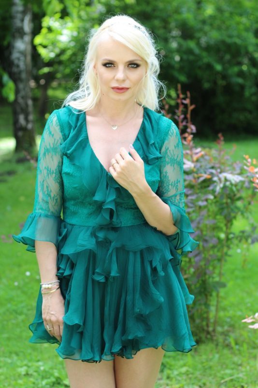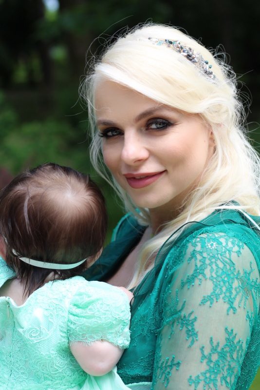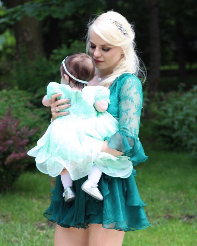Mai mult de atât, vedeta a făcut publice mai multe imagini de la ceremonie. Dacă ea a ales să îmbrace o rochie verde smarald, cu volane, micuţa Zora a fost îmbrăcată cu o ţinută verde deschis.
