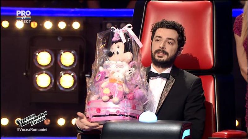 Cei patru jurati de la concursul de talente s-au ales cu daruri diverse. Primul care a primit cadoul a fost Marius Moga. Indragitul compozitor a primit un tort imens, cu Minnie Mouse, potrivit bineinteles pentru un tata de fata. Tudor Chirila a primit o carte cu un titlu sugestiv: „Teoria piersicutei”. Artistul, nerabdator, s-a apucat sa o rasfaioasca inainte sa ia din nou loc pe scaun.