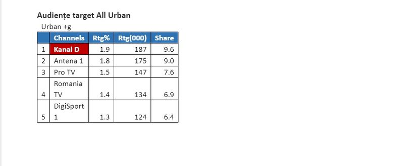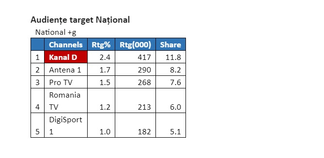 O medie de 417.000 de telespectatori au urmărit ieri Kanal D în intervalul 14:30 – 16:00, minutul de aur fiind înregistrat la 14:45, când 509.000 de fani ai emisiunii urmăreau reportajele inedite marca “Asta-i România!”.