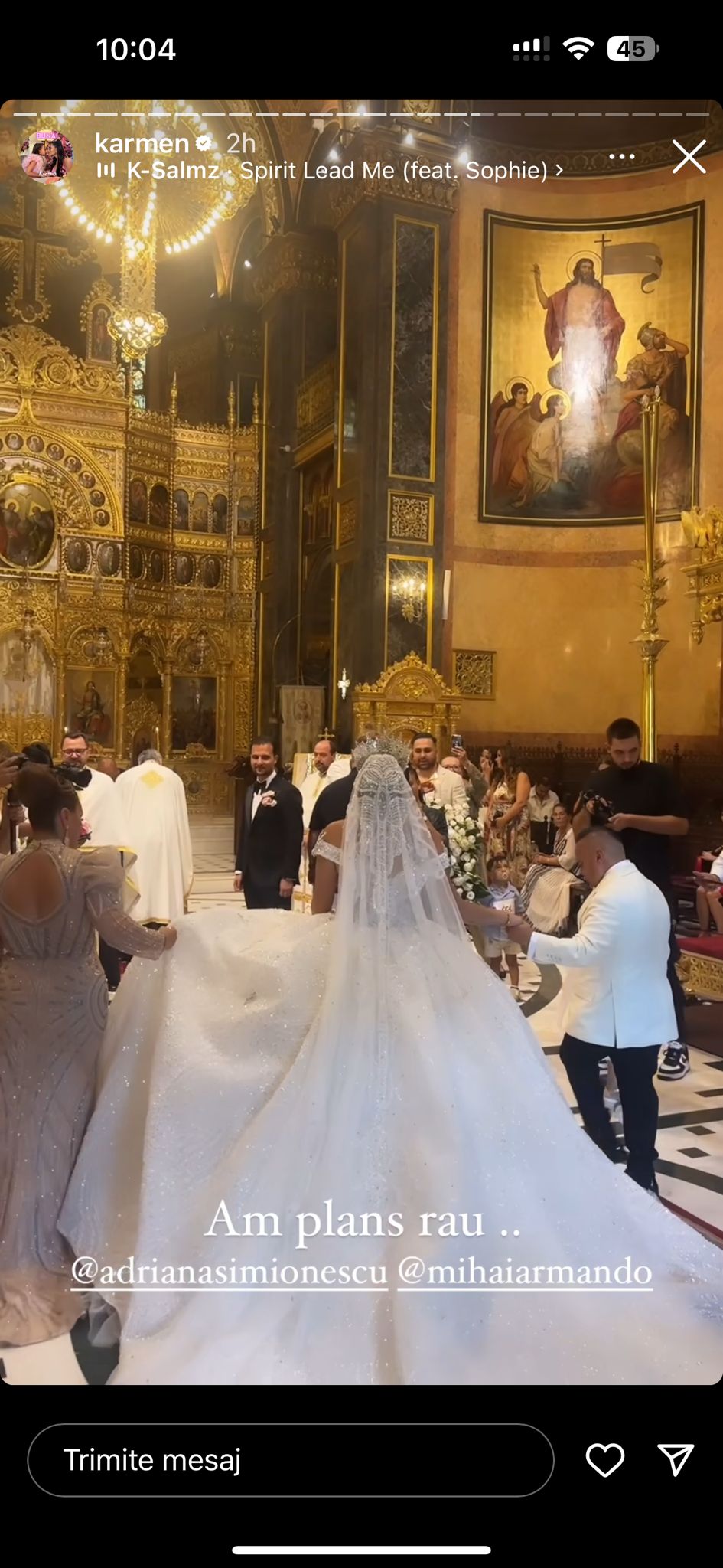 De asemenea, chiar Karmen Minune a fost foarte emoționată, izbucnind în lacrimi în momentul când și-a văzut sora îmbrăcată în rochie de mireasă, în fața altarului, condusă de tatăl lor, Adrian Minune.