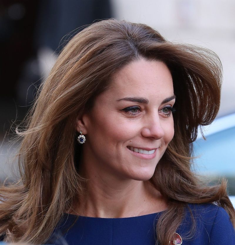 Însă este foarte greu să respecți regulile stricte de protocol ale Casei Regale, mai ales în situațiile de criză. În timp ce Ducii paraseau Teatrul Alb, Kate, care purta tocuri, s-a împiedicat. Prințul William a fost văzut întinzând o mână pentru a o sprijini, dar în cele din urmă nu a fost nevoie de ajutorul sau întrucât Kate și-a recăpatat rapid postura. Soții au zâmbit larg unul către celălalt și apoi au urcat în mașina pentru a părăsi locația.