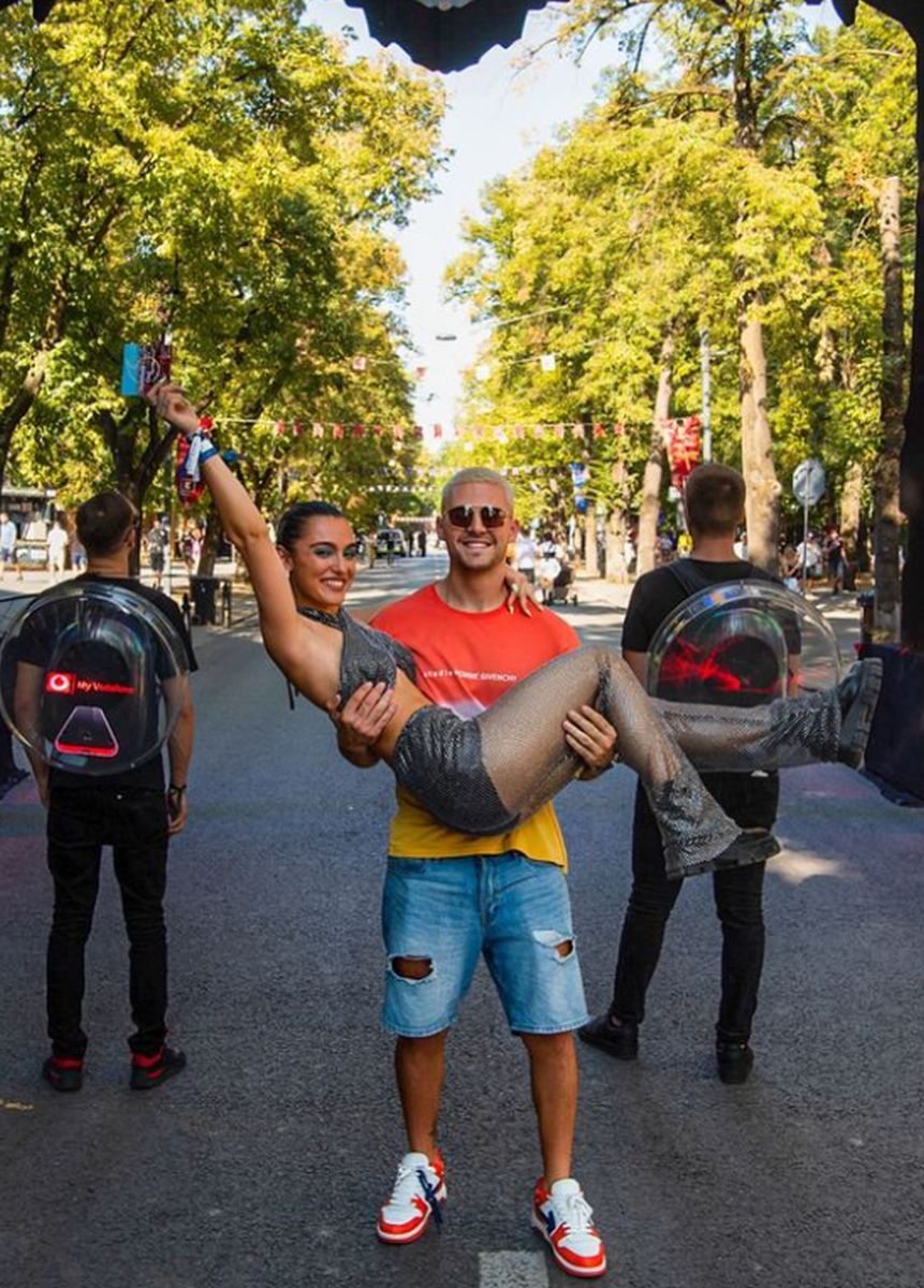 De la petrecere nu putea lipsi Alexia Eram, iubita artistului având un corp de invidiat și o ținută de milioane. Vedeta a decis să poarte alb, iar dacă v-ați fi așteptat la o rochie de vară vaporoasă… nu ați ghicit! Alexia a purtat un outfit rebel, format dintr-o pereche de blugi și un corset care să îi scoată decolteul la vedere.
