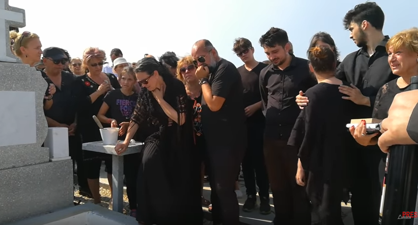 Distrusa de durere, sotia lui, indragita cantareata Ileana Sipoteanu, nu s-a dezlipit nici macar o clipa de la locul de veci! Tinuta pe brate de apropiati, femeia a incercat sa isi ascunda lacrimile in spatele unei perechi de ochelari de soare, de dimensiuni mari.