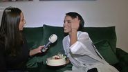 Sărbătorita de azi a primit un tort cu ciocolată şi fructe şi nu a putut răbda, a gustat imediat din el.