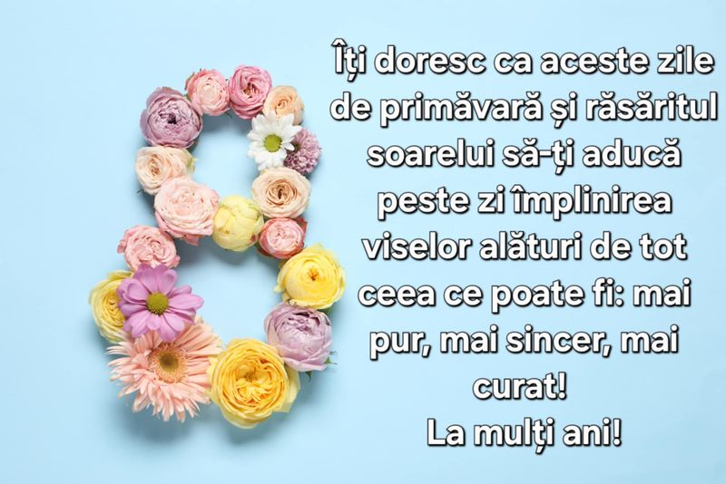 - „La mulți ani de 8 Martie! Fie ca această zi să-ți aducă în suflet primăvara și să te bucuri de fiecare moment.”