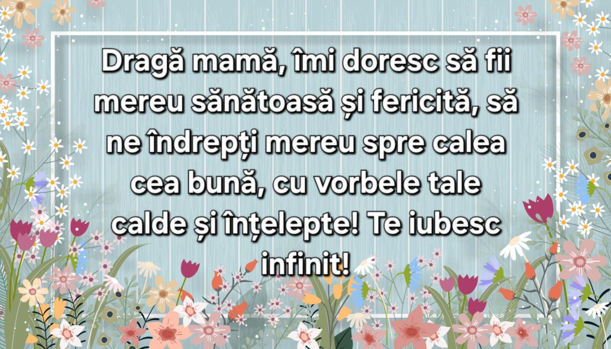 - „Îți doresc o zi de 8 Martie la fel de frumoasă și specială ca tine, mamă! Fie ca primăvara să-ți aducă bucurie și împliniri.”
