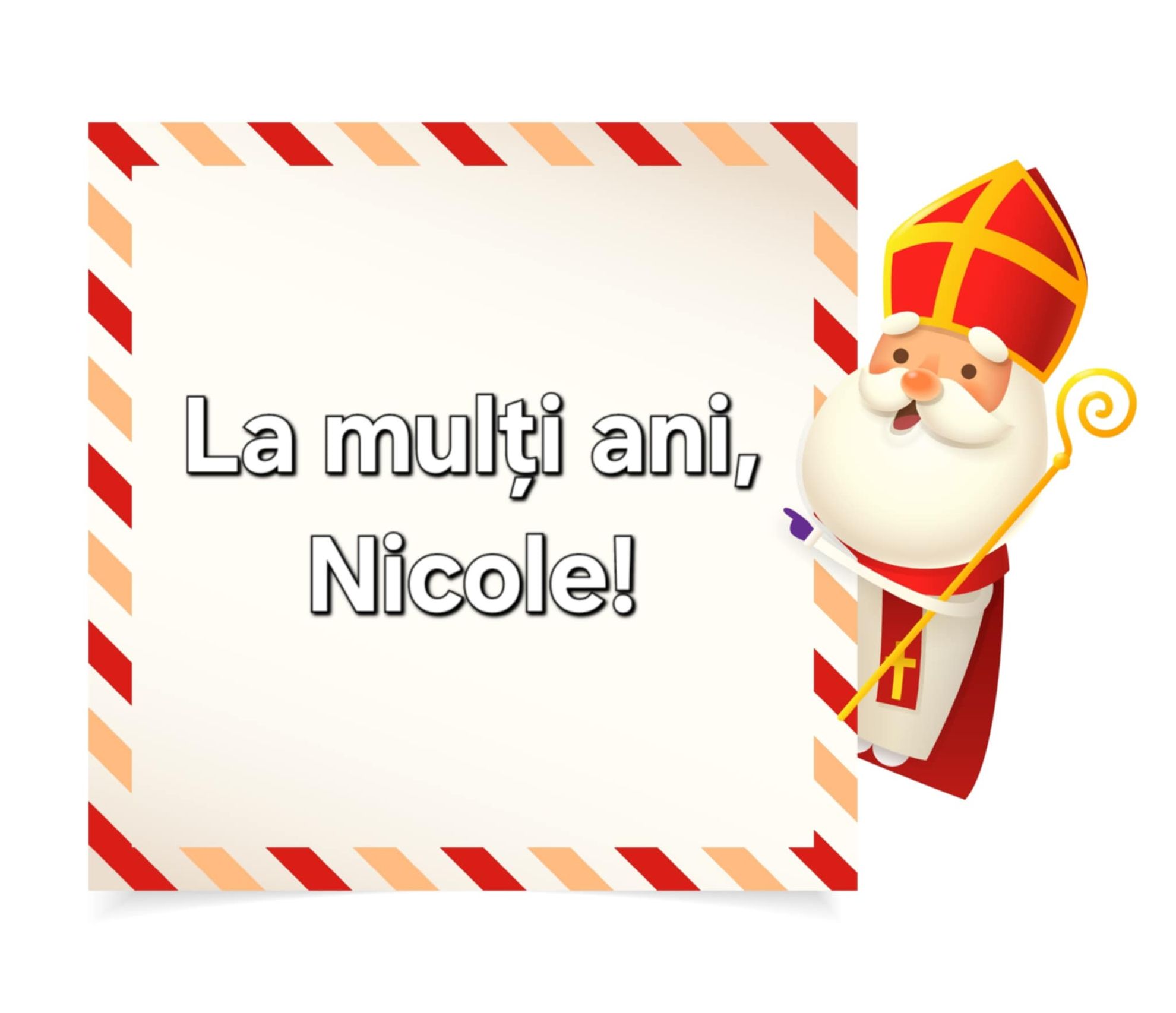 Îţi urez "La mulţi ani" pentru că porţi acest nume şi fie ca Sfântul Nicolae, pe care îl reprezinţi, să-şi coboare ochii asupra ta şi să îţi dăruiască fericirea dorită şi numai bucurii şi linişte interioară!