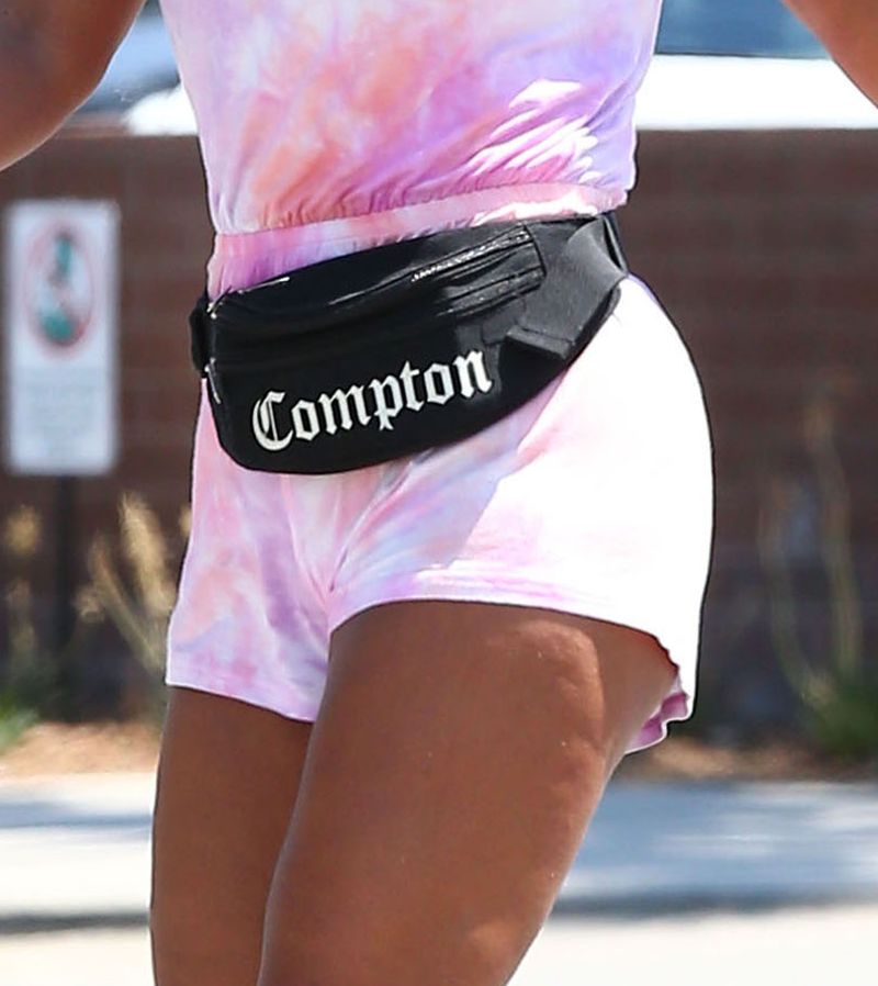 Actrita purta o salopeta sport, foarte scurta, iar picioarele pline de celulita s-au observat in toata „splnedoarea”.