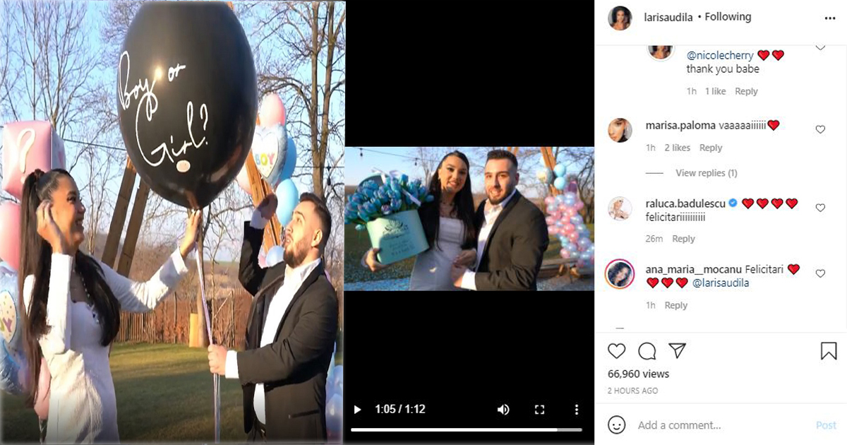 În cadrul unei petreceri, Larisa Udilă a dezvăluit sexul bebelușului. Ei bine, frumoasa brunetă o să fie mamă de băiat. Imediat după ce au văzut bucățile mici de hârtie albastră, iubitul Larisei a sărit în sus de fericire, după care și-a îmbrățișat iubita. În urmă cu câteva ore, vedeta a postat pe rețelele sociale un filmuleț extrem de emoționant în care au fost imortalizate cele mai importante și frumoase momente din cadrul petrecerii. „ De 10 ori l-am văzut, de 12 ori am plâns”,