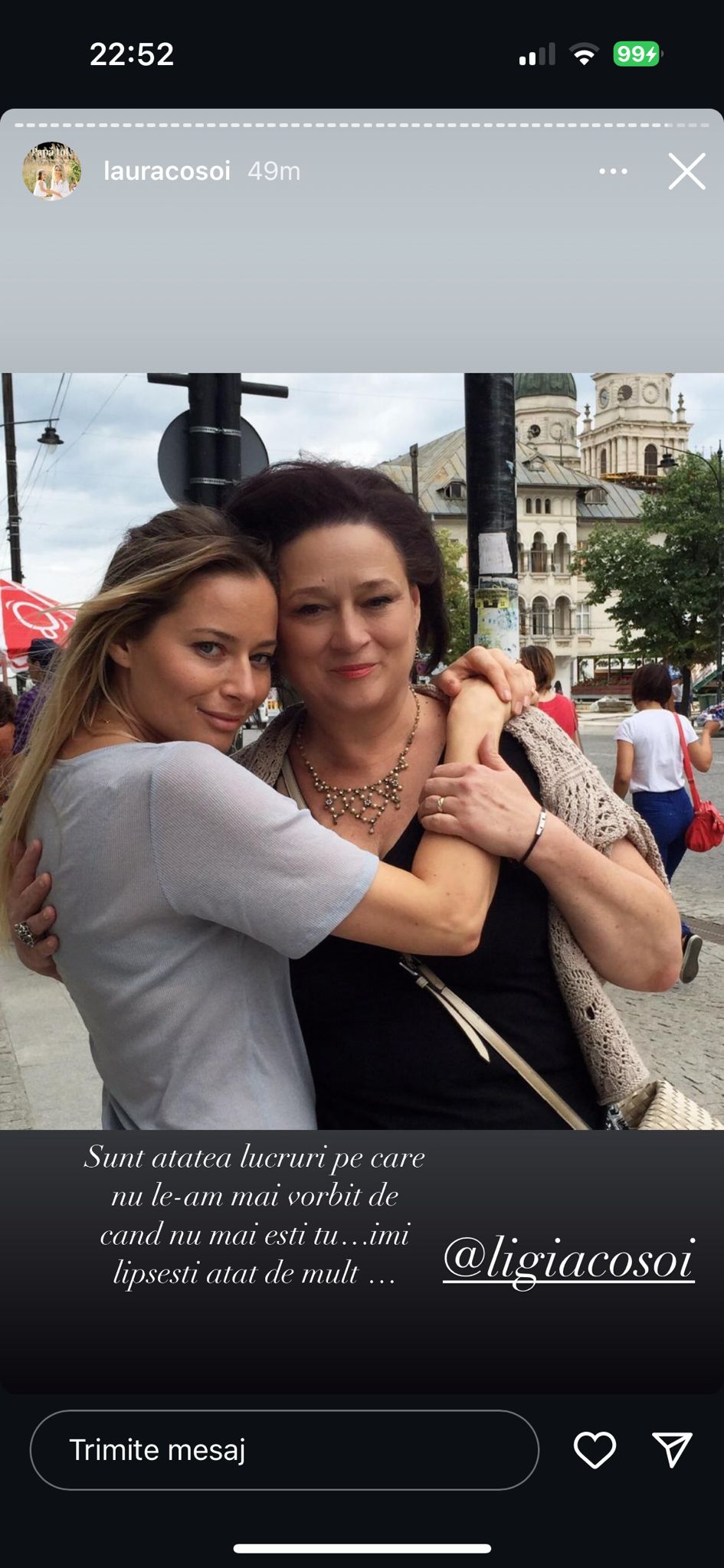 Laura Cosoi a trecut printr-o perioadă destul de grea în ultimele luni, după ce a pierdut una dintre cele mai dragi ființe, pe mama ei. Actrița a făcut câteva postări extrem de emoționante pe rețelele de socializare, fix în ziua în care s-au împlini trei luni de când Ligia Cosoi s-a stins din viață.