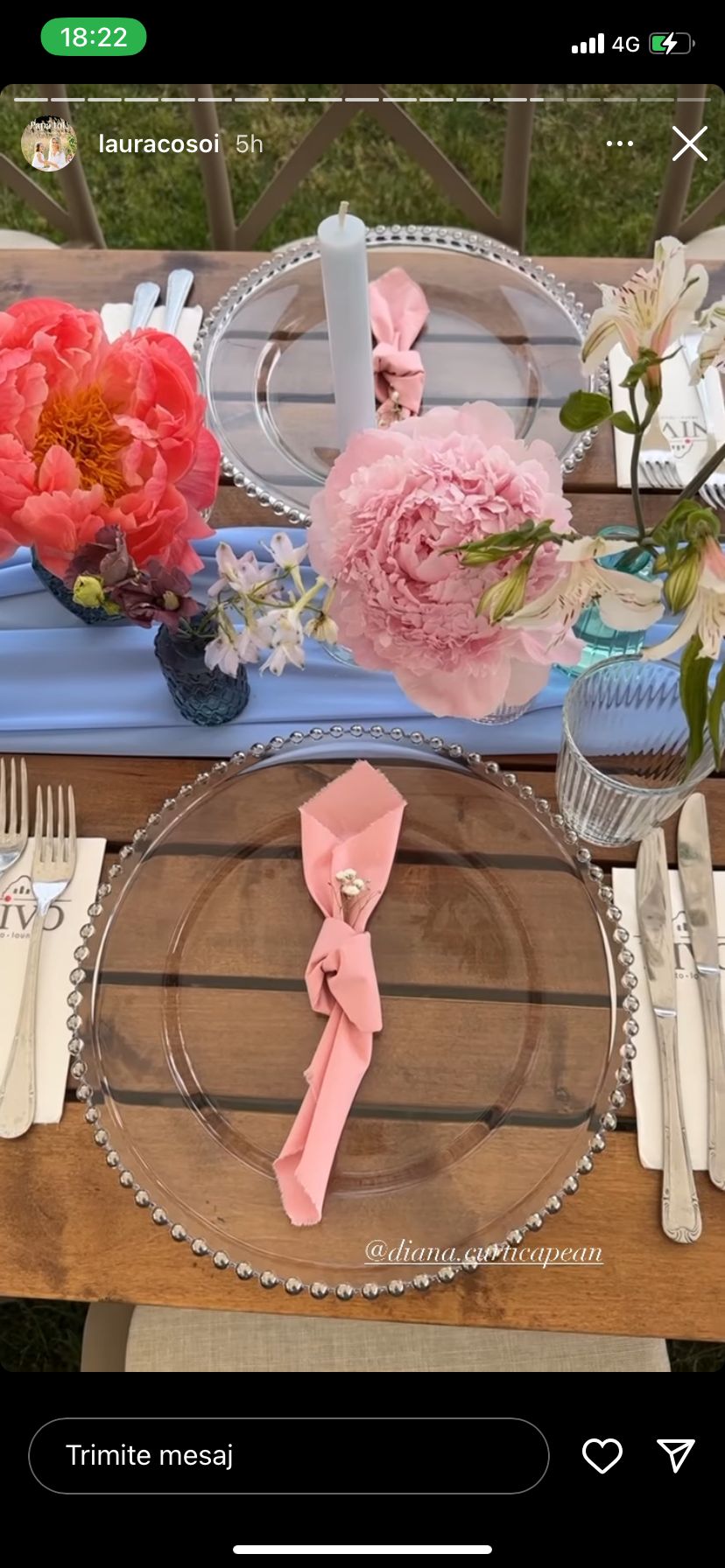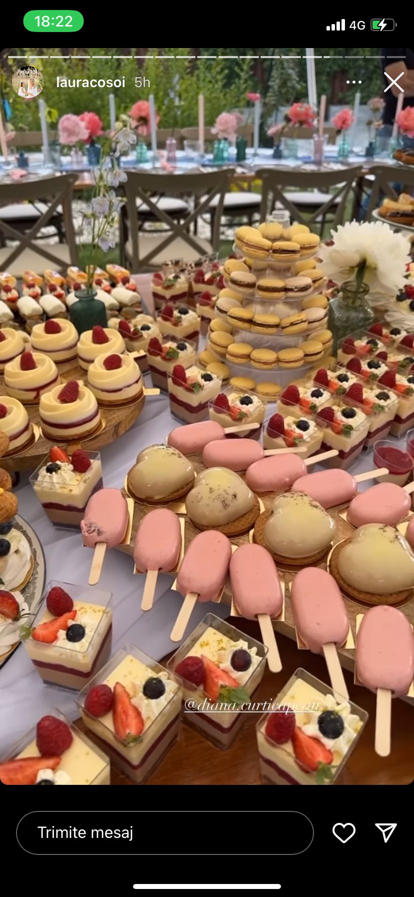Petrecerea se va desfășura în aer liber, într-un cadru restrâns, acolo unde candy baru-ul va face senzație printre invitați, de la mic la mare. Laura Cosoi a împărtășit cu admiratorii săi imagini cu aranjamentele de pe mese, dar și cu întreg decorul, fiind amenajat chiar și un spațiu special pentru cei mici.