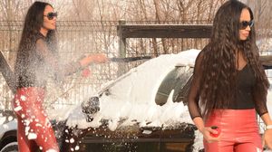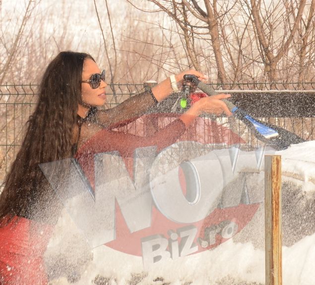 Laurette, INTERZIS de sexy, calare pe... masina! Manechinul te invata cum sa-ti deszapezesti automobilul! Paparazzii WOWBiz.ro au imagini incendiare! VIDEO EXCLUSIV