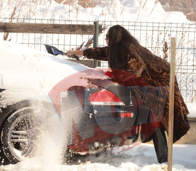 Paparazzii WOWbiz.ro au surprins imagini senzationale cu manechinul in timp ce dadea de zor cu lopata ca sa scape de zapada de pe masina.