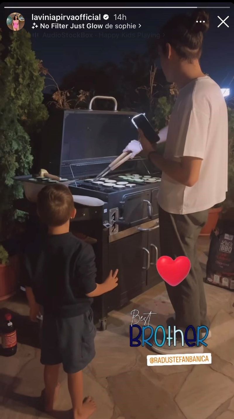 Fiul cel mare al lui Ștefan Bănică Jr. a declarat de multe ori că se înțelege foarte bine atât cu Violeta, fiica artistului și a Andreei Marin, dar și cu Alexandru, băiețelul pe care cântărețul îl are din actuala sa căsnicie, cu Lavinia Pîrva. Ei bine, soția artistului a vrut să le arate tuturor ce relație specială există între Radu Bănică și fratele lui mai mic și i-a filmat pe ascuns. Imaginile au fost postate pe internet chiar de Lavinia Pîrva, iar în filmulețul publicat de vedetă pe Instagram se vede cum Radu Bănică îi gătește fratelui său, iar micuțul Alexandru privește atent cum fiul cel mare al lui Ștefan Bănică Jr. întoarce legumele pe grătar.