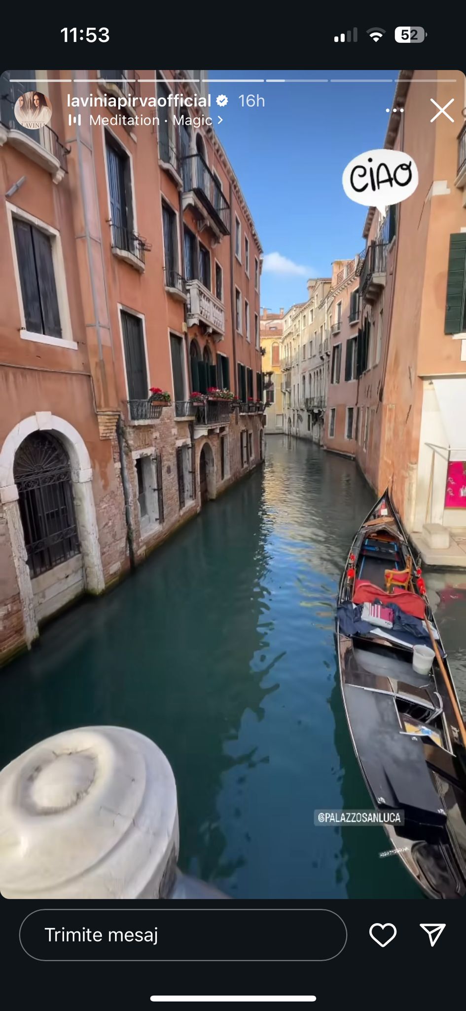 ajuns la hotel @palazzosanluca cu barca! Nu cred că am ratat vreun mijloc de transport! A fost o super experiență”, a scris Lavinia Pîrva pe contul ei de Instagram