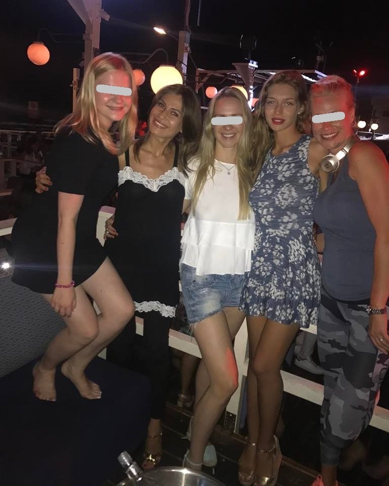 Cele doua tinere apar impreuna, alaturi de alte trei tinere, intr-o fotografie facuta intr-un club din Tel Aviv.
