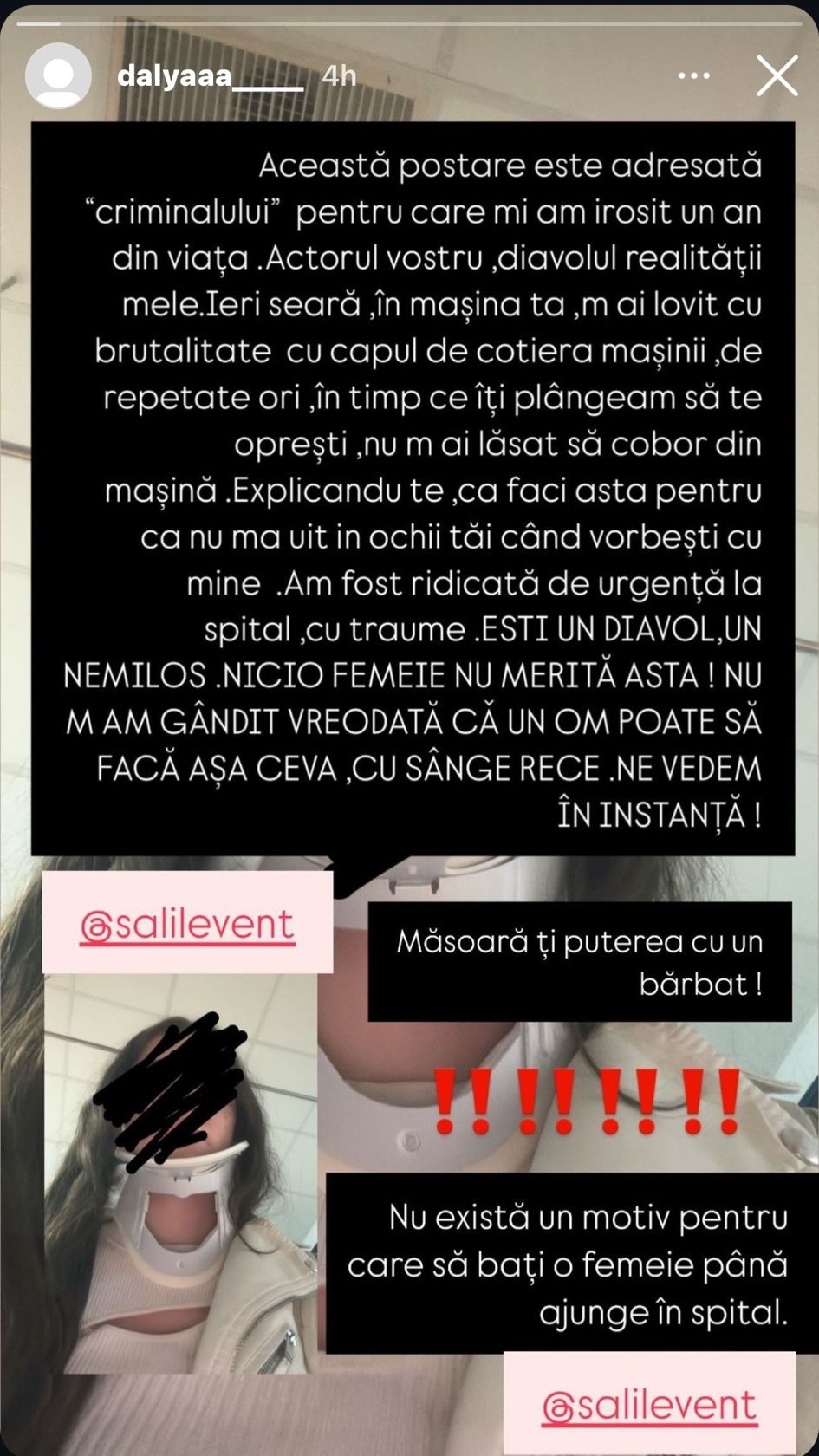 Levent Sali se află în plin scandal cu partenera sa de viață. Tânăra în vârstă de doar 19 ani îl acuză pe actor că a lovit-o cu bestialitate și nu a lăsat-o să coboare din mașina. Dalia a ajuns de urgență la spital, acolo unde a avut nevoie de îngrijiri medicale. Aceasta este pregătită să meargă în instanță pentru a-și face dreptate.
