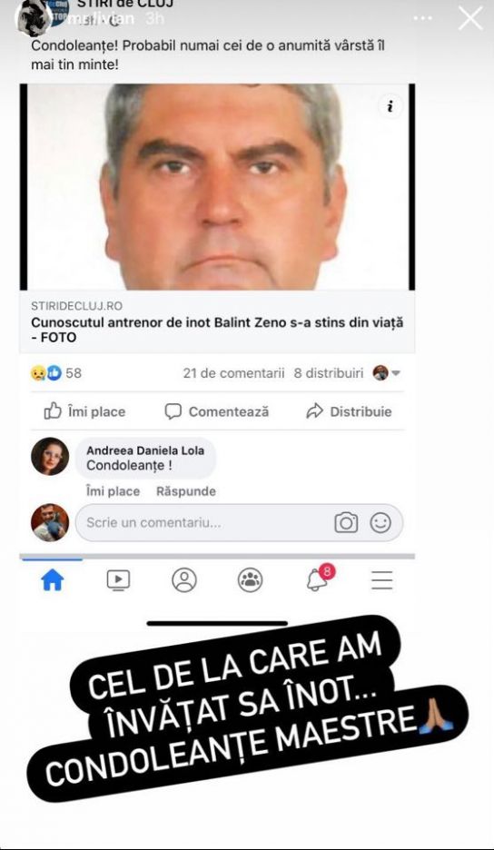 Pentru a-i aduce un ultim omagiu fostului său profesor, Livian de la Puterea dragostei a postat o fotografie cu acesta la secțiunea de stories de pe Instagram. „Condoleanțe! Probabil numai cei de o anumită vârstă îl mai țin minte”, se arata în poza respectivă. Livian a scris și el câteva cuvinte despre celebrul antrenor de înot. „Cel de la care am învățat să înot. Condoleanțe, maestre!”, a scris Livian, la secțiunea de InstaStory de pe Instagram.