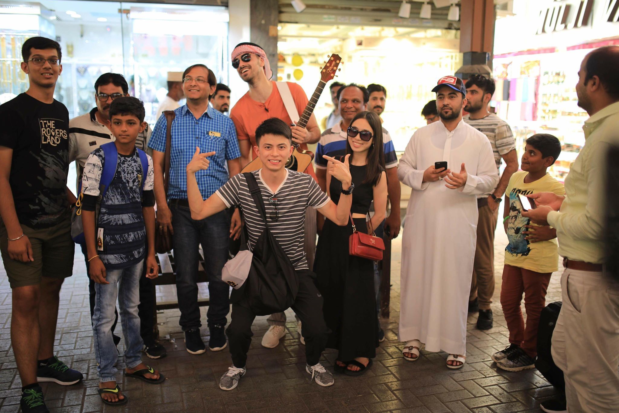 De la cantat nu s-a putut abtine si a facut-o in superba zona La Mer si in souk-ul (bazarul) de aur. S-a bucurat ca un copil de Acvariul din Dubai Mall, unde a privit in ochi mai ales rechinii. O fire adaptabila si prietenoasa, artistul nu putea sa nu imbrace portul traditional si sa mearga in Orasul Vechi pentru a targui prin souk-urile arabesti.