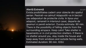„Inspectoratul General pentru Situaţii de Urgenţă a emis un mesaj de tip Ro-Alert pentru zona de nord a judeţului Tulcea prin care informează locuitorii despre posibilitatea căderii unor obiecte din spaţiul aerian. Acest mesaj este transmis după ce structurile cu rol e apărare a frontierelor au detectat posibile ţinte în apropiere de graniţele României.