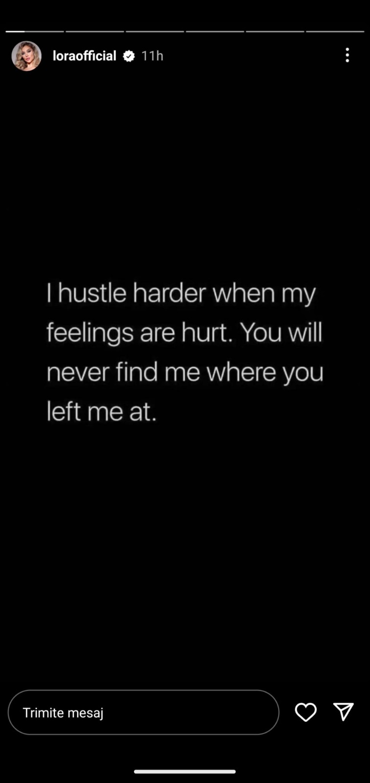 Mai exact, Lora a postat un citat în care era vorba despre sentimente rănite:  „Mă grăbesc mai tare atunci când sentimentele mele sunt rănite. Nu mă vei găsi niciodată acolo unde m-ai lăsat”,  este citatul postat pe contul de Instagram al Lorei, care i-a îngrijorat pe fanii ei și ai lui Ionuț Ghenu.