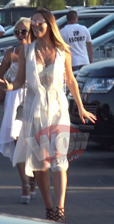 Denisa Nechifor a aratat si ea spectaculos intr-o tinuta alba, o combinatie de voal cu dantela, la care a asortat margele mari albe, o gentuta de firma sic si o pereche de sandale negre! Nota10 pentru alegerea vestimentara!
