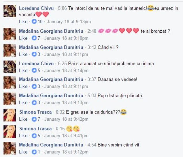 Denisa Despa se relaxeaza in tarile calde, in timp ce prietenele ei se lupta cu nametii in tara.
