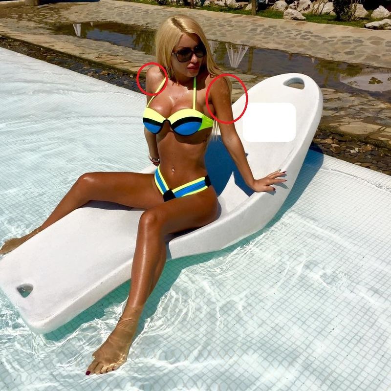 Surprinsa si cu posteriorul in sus si din fata, cu picioarele usor departate, Loredana Chivu i-a innebunit pe barbati. Pe langa pozitiile incitante, un alt detaliu a atras atentia prietenilor virtuali. Bronzul blondinei incepe sa se duca de pe maini, lasand la vedere niste pete inestetice.
