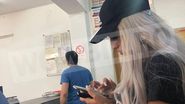 Imbracata in haine lejere si "camuflat" cu o sapca neagra, Loredana si-a asteptat randul la coada, in timp ce butona de zor telefonul.