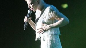 Sandalele purtate de solista cu o rochie alba, de efect, ii erau divei cu cel putin un numar mai mari, acest aspect reflectandu-se si in miscarile de dans precaute ale cantaretei.