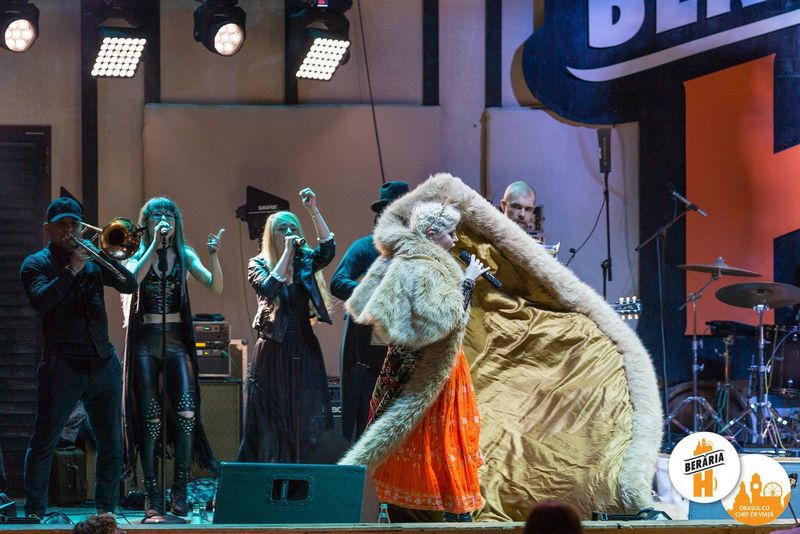 Loredana Groza a facut spectacol la o berarie din Capitala! A urcat pe scena cu o blana lunga de cativa metri! FOTO