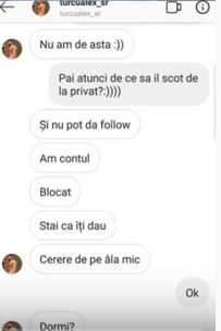 "Turcu o înșală din nou pe Roxana. Sau vrea să o înșele din nou. A cincea oară pe luna asta. Turcu, este a nu știu câta oară când abordezi fete pe Instagram cu care vrei să te întâlnești. Dar ce fete, bine, sportive, fund mare, aranjate.