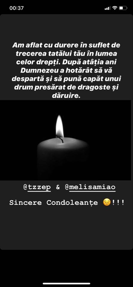 ¨Am aflat cu durere în suflet de trecerea tatălui tău în lumea celor drepți. După atâția ani Dumnezeu a hotărât să vă despartă și să pună capăt unui drum presărat de dragoste și dăruire. Sincere condoleanțe!”, este mesajul Andrei de la Puterea dragostei.