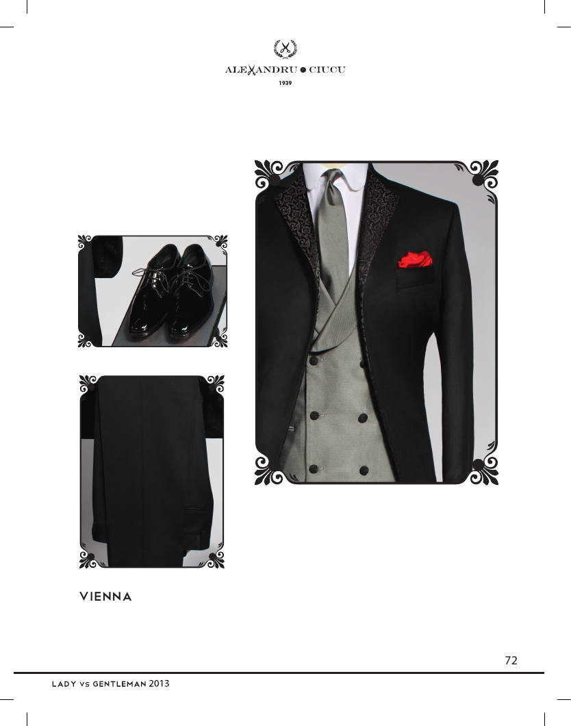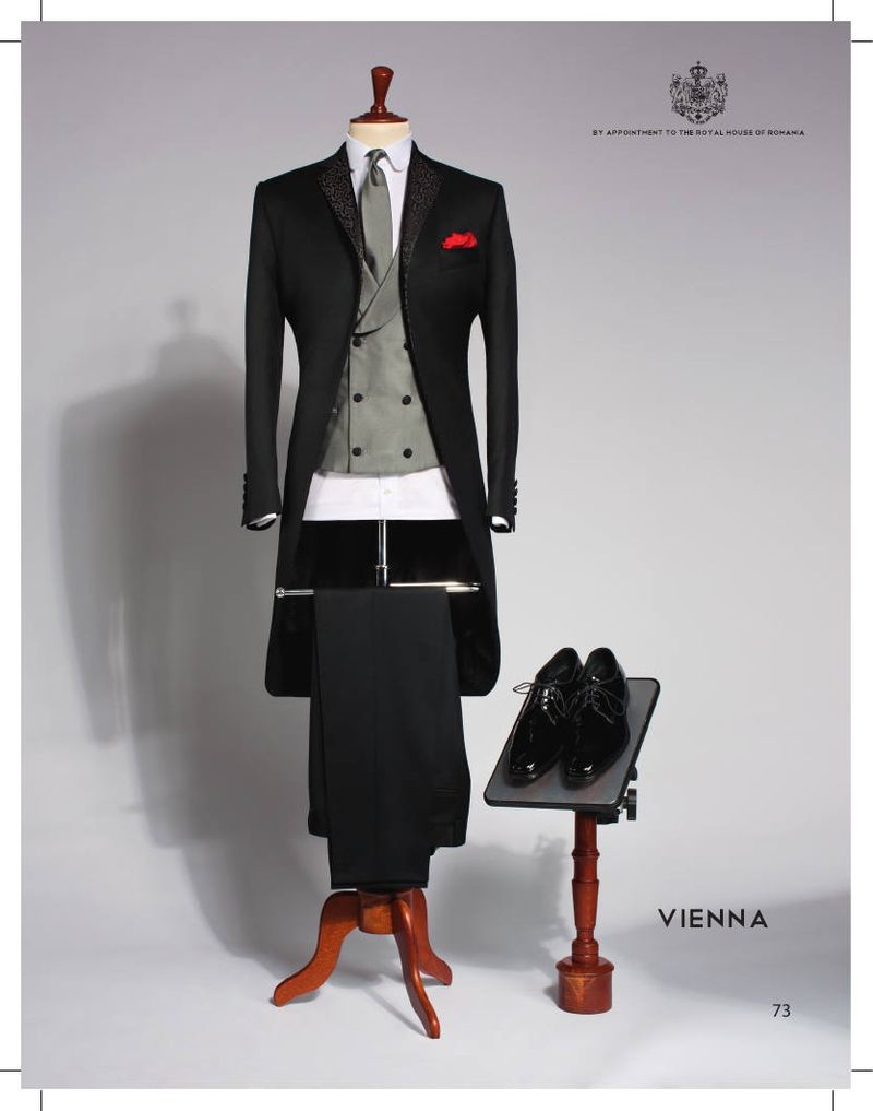 “Am stabilit împreună modelul pornind de la dorinţele lui. Varianta finală cuprinde o redingotă neagră cu rever din brocart, pantalon negru şi două cămăşi albe. În timpul zilei, la gât va purta lavaliere, iar seara, papion. Mă bucur mult că a acceptat să îi fac şi vesta după ce i-am precizat că nu trebuie neapărat să o poarte pe sub redingotă, ci să o îmbrace de la momentul dansului încolo. În felul acesta va fi în continuare elegant, dar mai liber în mişcări”, declară Alexandru Ciucu.