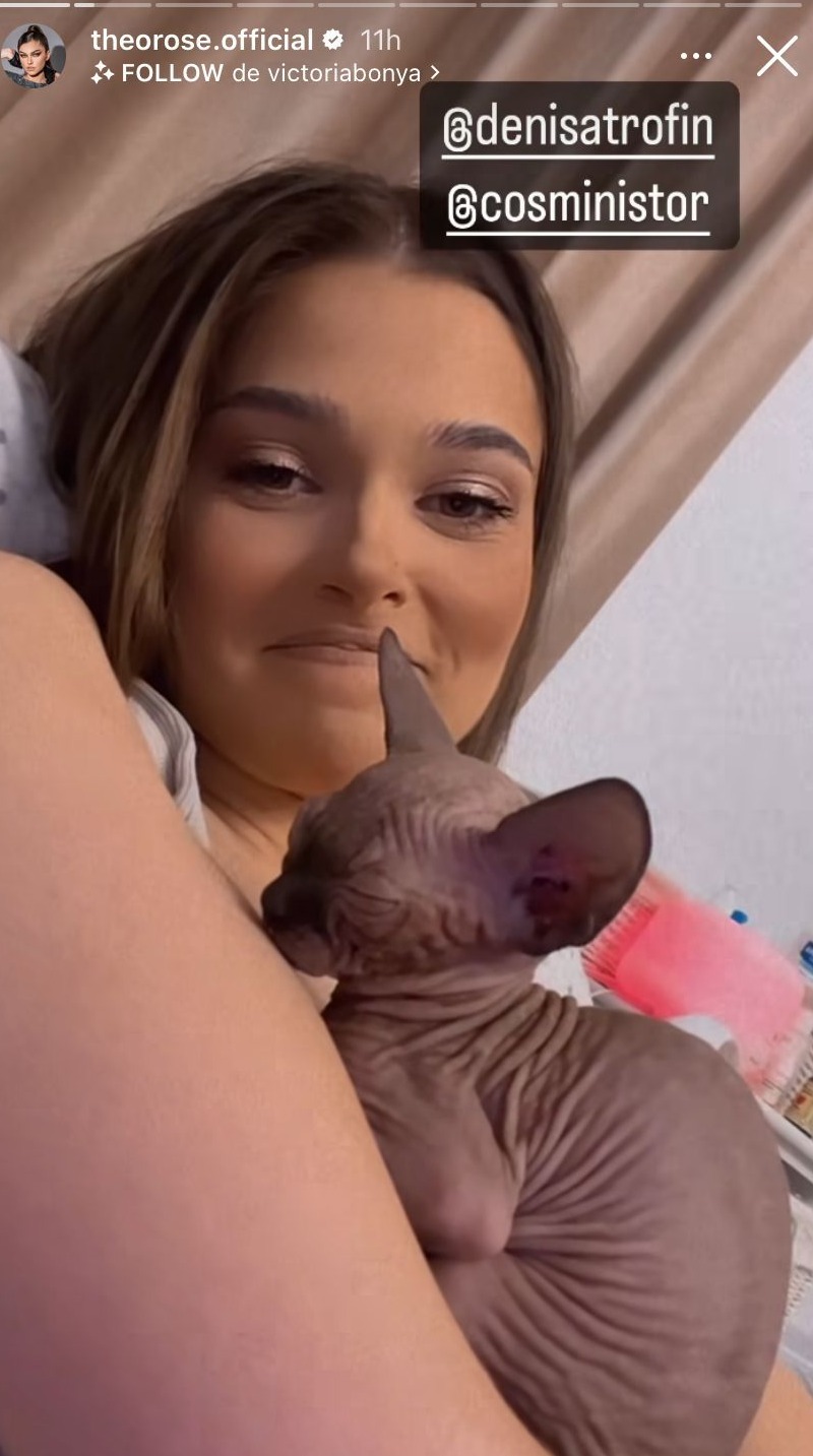 „Am primit un cadou mai cu întârziere, nu sunteți pregătiți. Șobolanca asta este – cum credeți că i-am pus numele? – Sushi, ca să fie prietena lui Sasha. Finii mei s-au ocupat și mi-au făcut o surpriză, și eu când am văzut-o m-a luat cu leșin, de drag, nu de altceva. Tremura un pic, dar mi-a fost milă de ea dar i-am zis că eu acum o s-o iubesc mult și ea acum a ajuns acasă la noi, de acum asta e casa ei. Pupă mama pe ea.”, a spus Theo Rose în mediul online.