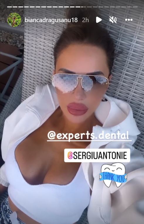 „Tocmai ce m-am trezit dintr-o anestezie, sunt ușor debusolată, dar imi revin încet-încet. Partea bună și frumoasă este că am ales cel mai bun doctor implantolog. (…) Alături de mine este și sora mea care mă susține.”, a povestit Bianca Drăgușanu pe contul ei personal de Instagram.