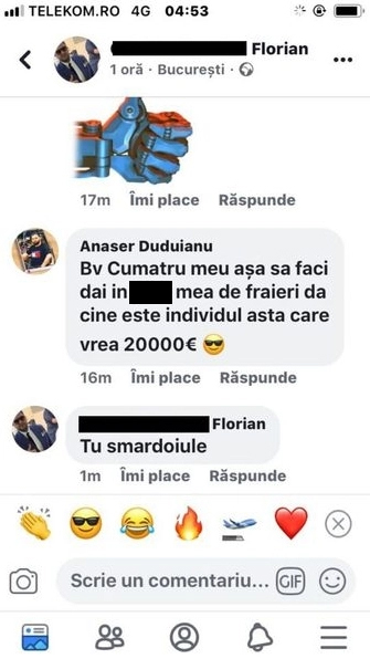 ”Pe toți lăutarii îi tâlhărește și îi terorizează și vrea bani de la mine, Marius Babanu și Marinică Nămol. Vrea bani și de la Leo de la Kuweit. 20.000 euro. Să vii că îți dau”, a scris Florian.