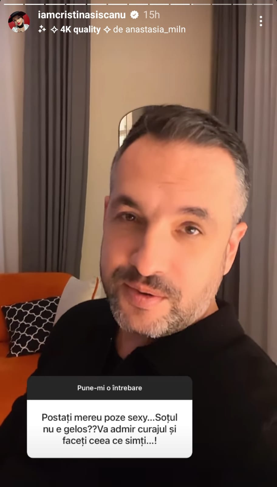 Cristina Șișcanu și Mădălin Ionescu obișnuiesc să se afișeze destul de des în mediul online și să împărtășească cu cei care îi urmăresc momente importante din viața lor. Acest lucru vine la pachet, însă, și cu anumite curiozități din partea celor de acasă. De curând, prezentatoarea TV a fost întrebată dacă soțul ei este de acord cu ipostazele în care se fotografiază, iar răspunsul nu a întârziat să apară.