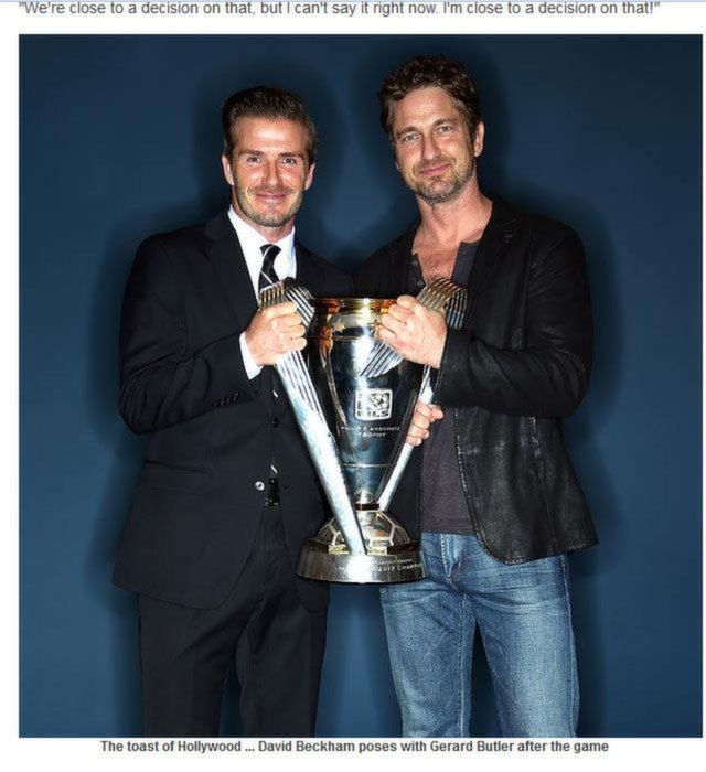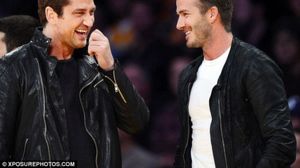 Gerard Butler este bun prieten cu familia Beckham si cu siguranta i-a facut cunostinta frumoasei romance cu David si Victoria. Actorul care a jucat in 300 s-a intalnit cu fotbalistul la meciul lui Lakers si au stat minute bune la taclale, chiar daca aveau locuri in zone diferite. Gerard si Becks au glumit unul cu celalalt si s-au tachinat, dupa care au mers sa isi ocupe locurile pentru a putea urmari meciul de baschet.