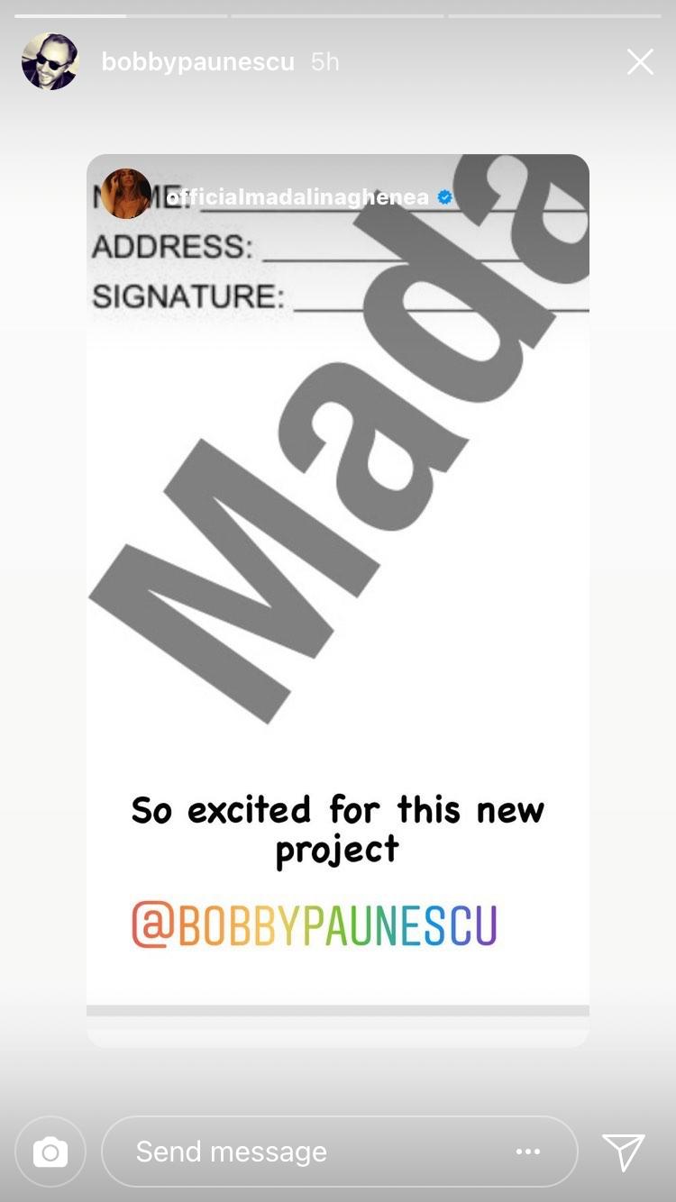 Mădălina Ghenea a dat de înțeles că va face parte dintr-un nou proiect al regizorului Bobby Păunescu. Frumoasa vedetă a scris pe pagina ei de Instagram că este ”atât de încântată că face parte din acest nou proiect”, cu trimitere la regizorul român.