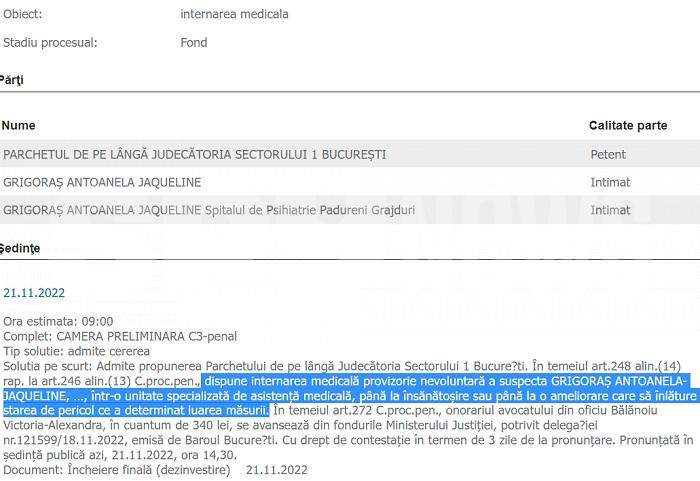 La scurt timp după ce judecătorii au dispus amânarea aplicării pedepsei în cazul Antoanelei Grigoraș pe un termen de doi ani și plasarea ei sub supraveghere, aceștia au luat o nouă decizie în privința femeii.