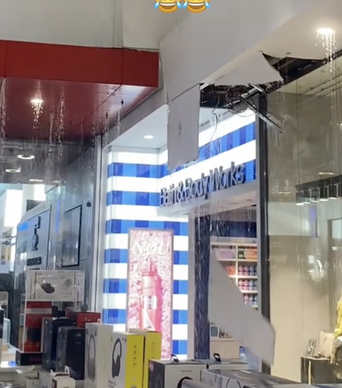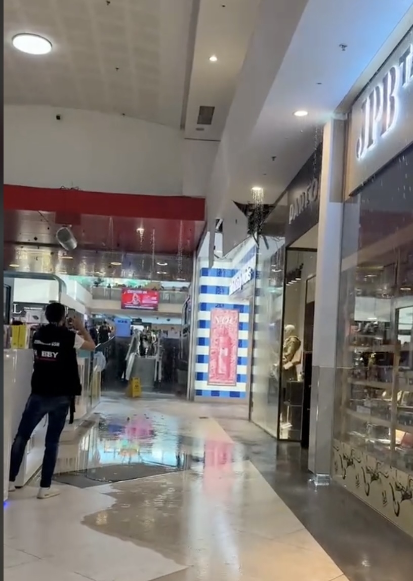 Imaginile postate pe rețelele de socializare arată cum tavanul s-a deteriorat, iar apa cade ca o cascadă. Mai mulți martori susțin că un stand cu mărțișoare a fost mutat de urgență pentru a fi salvat de la distrugere. Un angajat al mall-ului a fost surprins cerând celor prezenți să nu mai filmeze incidentul.