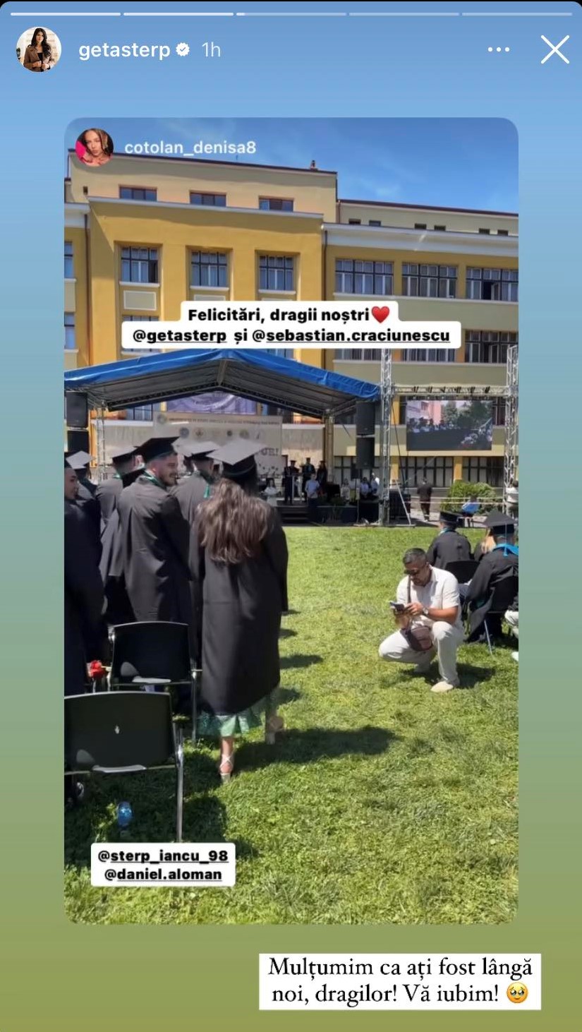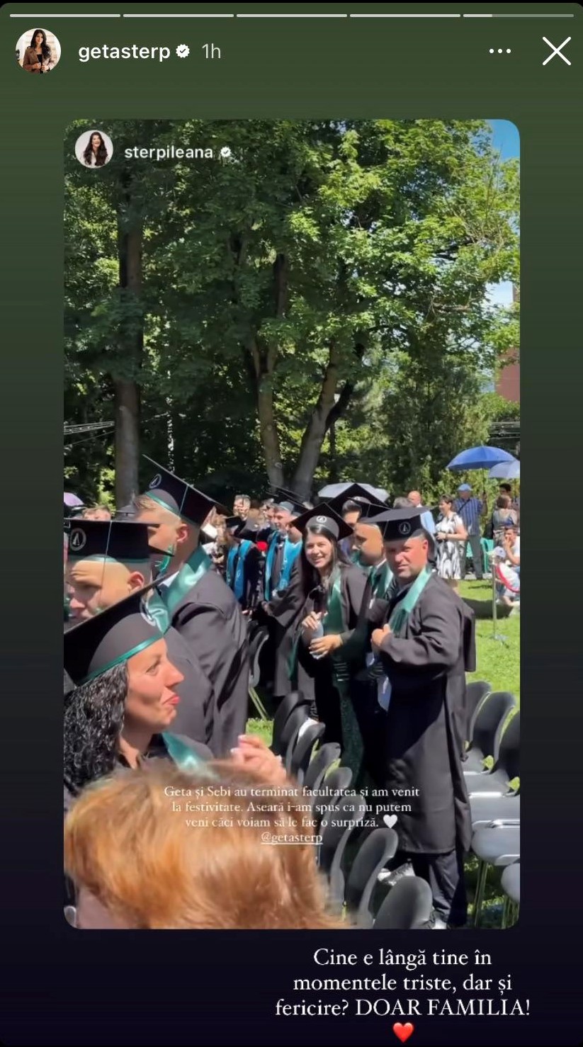Un eveniment important a avut loc astăzi, pe 19 iunie, în familia Sterp. Cea care a dezvăluit totul este chiar mama Geta, care a anunțat, printr-o postare pe Instagram, că fiica ei cea mică și soțul acesteia, Sebastian Crăciunescu, au absolvit astăzi facultatea.