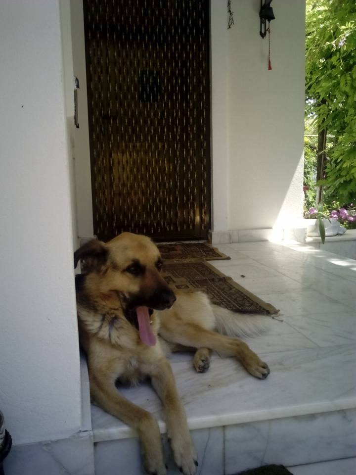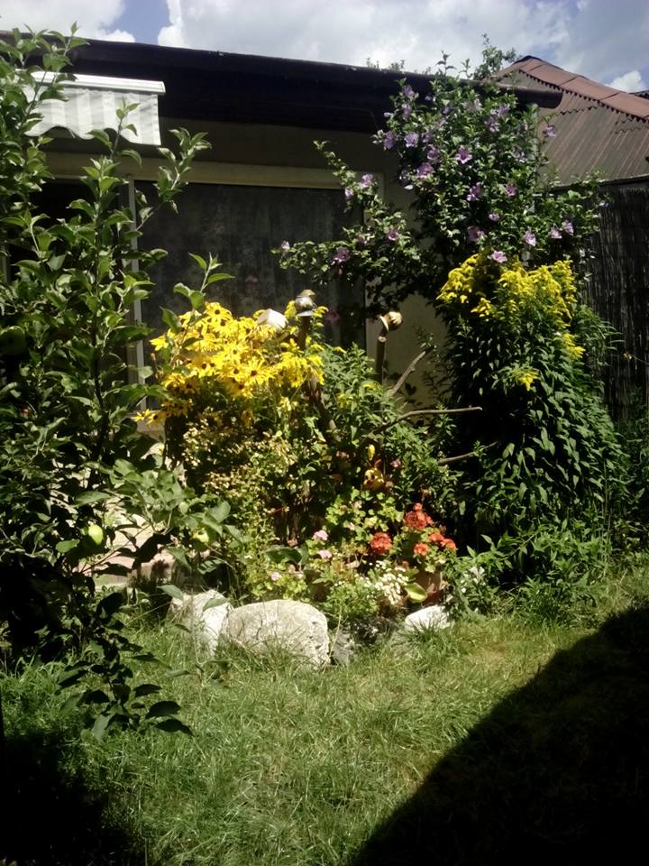 novalueCat e ziua de lunga, mama lui Andrei Tinu munceste in gradina sa, pazita de cainele familiei.