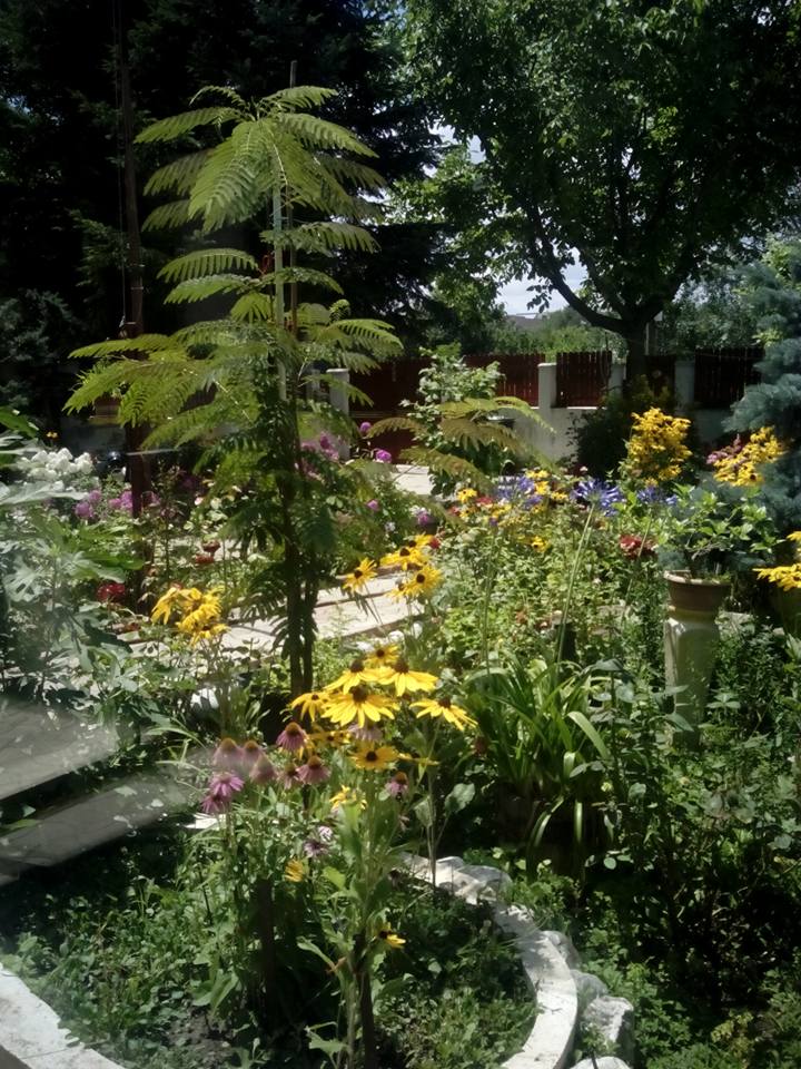 novalueIn mijlocul curtii troneaza o piscina, iar de jur imprejurul ei au fost amenajate fantani arteziene in miniatura si alte aranjamente fanteziste sau simpliste realizate din pietre si statuete de exterior.