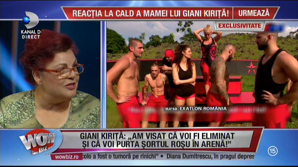 Giani Kirita a fost eliminat in seara aceasta de la Exatlon si mama lui a venit in platoul WOWBiz pentru a vorbi despre eliminarea fiului ei.