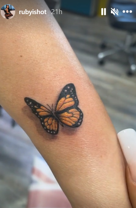 Ruby nu și-a lăsat fanii pe gânduri și le-a dezvăluit ce tatuaj a decis mama ei să își facă. Este vorba despre un fluture, iar cele două sunt foarte mulțumite de rezultat. „Gata! Uitați-l, ce drăguț e. Zici că zboară”, a mai spus artista.