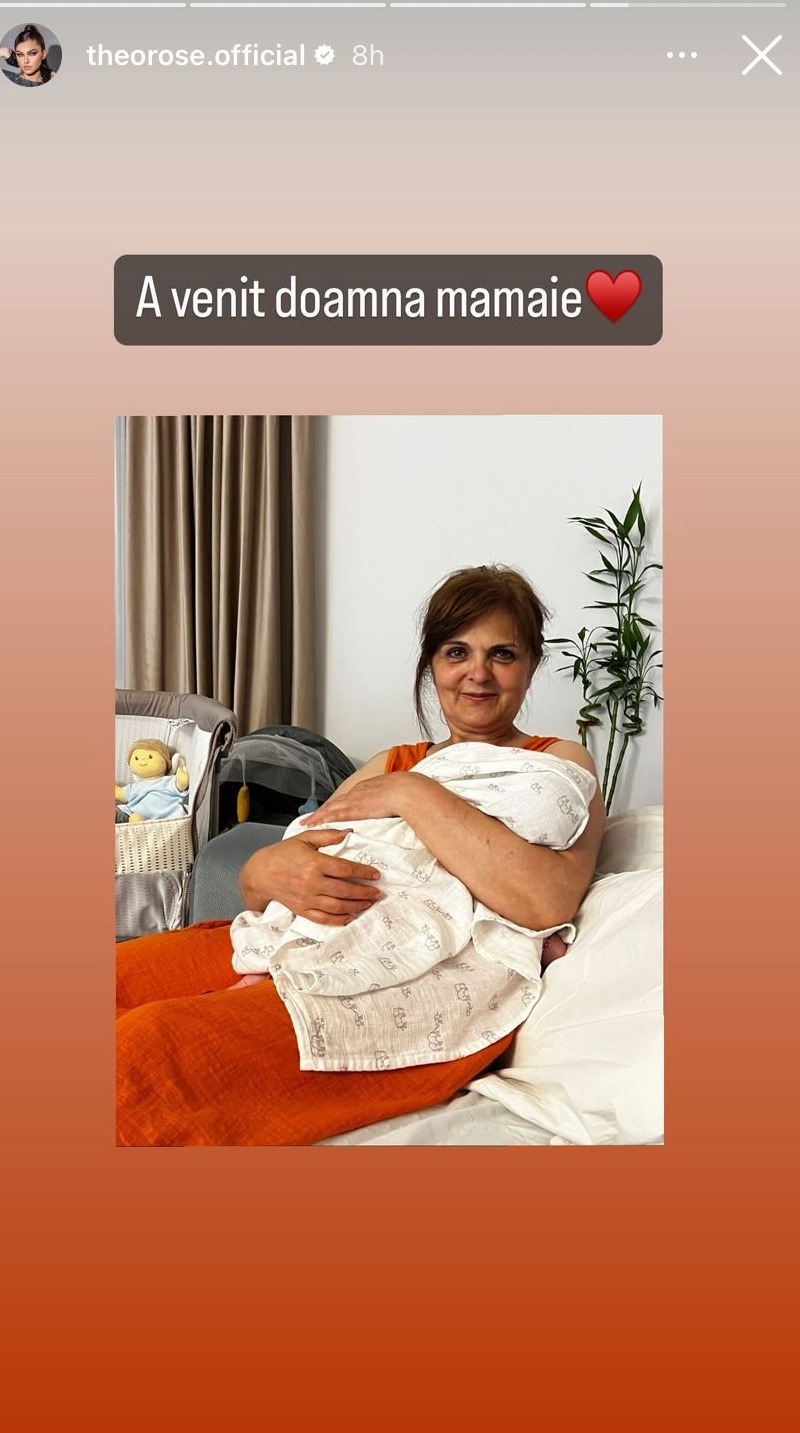 „A venit doamna mamaie”, a scris Theo Rose în dreptul fotografiei postate în mediul online.