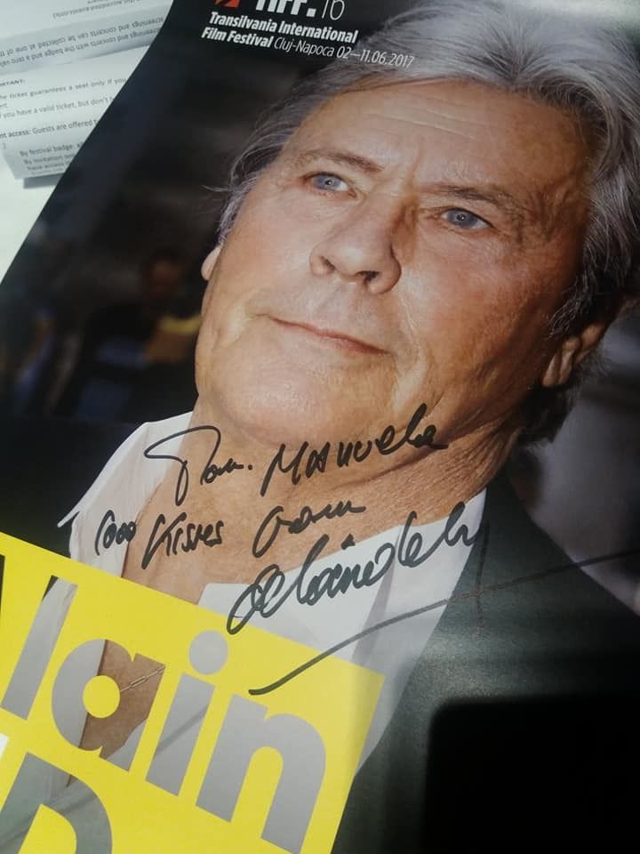 La TIFF 2017, festivalul de Film desfasurat saptamana trecuta la Cluj, invitat de onoare a fost marele actor francez Alain Delon, care a primit premiul pentru intreaga cariera.  In contact cu legenda cinematografiei mondiale a intrat si frumoasa actrita Manuela Harabor, care a povestit cum s-a intamplat totul, postand si o fotografie cu dedicatia pe care i-a facut-o Delon.