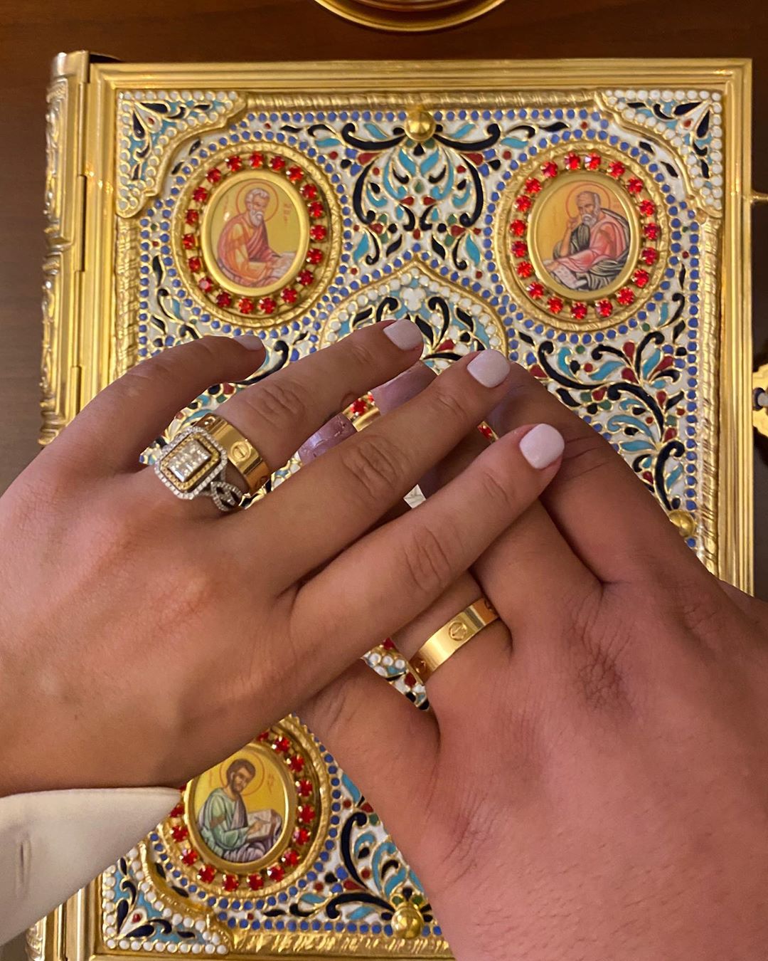 Apoi, în noiembrie 2019 a avut loc cununia civilă. „Alături de soția mea! Prietena mea cea mai buna! Dragostea și lumina ochilor mei! Te iubesc”, a postat atunci Oprea Jr. Zilele trecute, ei au făcut și cununia religioasă. Pe paginile de socializare, Davida a postat o fotografie cu mîinile celor doi, așezate pe o icoană primită cu această ocazie.